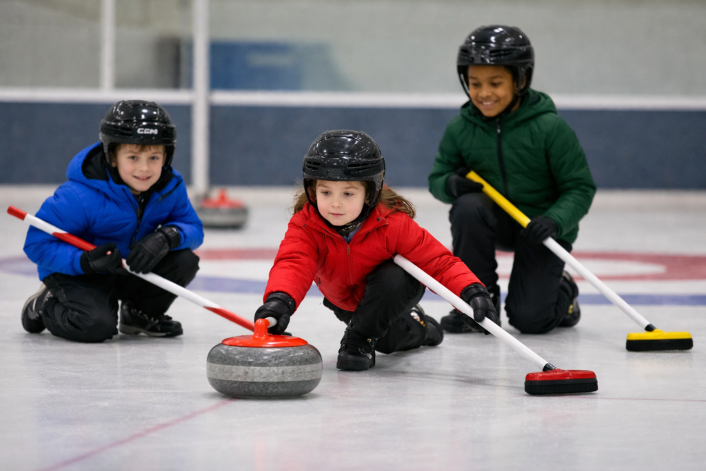 If you’re looking to introduce your kids to the great sport of curling the Callie Curling Club offers introductory instruction for children 5-8.  The program is a great way for children to learn the rules, experience the game and have loads of fun with on-ice activities and games lead by our instructors. Brooms and sliders are provided at the curling clubs.